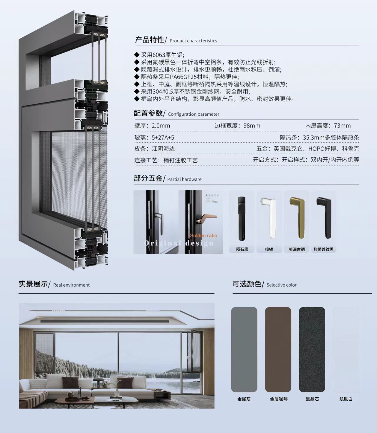 精工细作、表里如一,具有静音、节能、隔热、防风、安全、美观、稳定等优点。